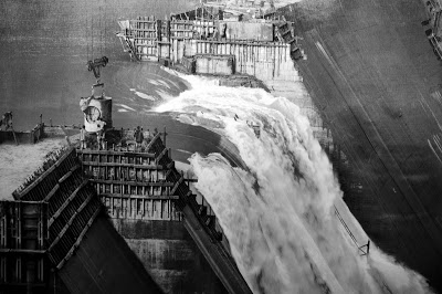 En lo que respecta a la labor arquitectónica, Vaquero Palacios, se incorpora al proyecto con la obra ya comenzada. Uno de los principales problemas a los que se enfrentó fue el de la escala, el concerniente a la propia monumentalidad del objeto industrial, una arquitectura sobredimensionada. En una primera fase, interviene en el tratamiento de la coronación del aliviadero, que sirve de paso a la carretera de Grandas de Salime a Oviedo. La intervención de Vaquero en esta zona enlaza con la tradición expresionista germánica, proporcionando una poderosa fuerza final a la monumentalidad de la presa. Aprovechando las posibilidades plásticas del hormigón armado, el artista utiliza los contrafuertes de la presa para construir cinco miradores que rematan la elevada pared de hormigón. A ellos se suman dos terrazas, proyectadas hacia el embalse entre estas se encuentran las casetas que alojan la maquinaria de apertura y cierre de las compuertas. En cuanto a la labor artística, Vaquero Palacios creó sobre el muro de la central 12 bajorrelieves que relatan el proceso de producción de la energía eléctrica. En palabras del autor, se trata de «una serie de motivos para imaginar esquemáticamente lo que estaba sucediendo detrás del telón». Los relieves, con una fuerte carga expresionista, simbólica y social, nos recuerdan las obras de grandes muralistas mexicanos como Rivera o Siqueiros. Ya en el interior de la central, la intervención de Vaquero Palacios es visible en numerosos elementos, como la escalera interior de diseño modernista o la balconada volada sobre inmensas ménsulas de hormigón desde la que se domina la sala de turbinas. En los muros de esta sala se encuentran las obras más conocidas, dos murales de 55 y 60 metros de longitud. El primero, obra de Joaquín Vaquero Turcios, narra, con realismo el complejo proceso de construcción de la presa, a través de la siguiente sucesión de acontecimientos que hicieron posibles la construcción del embalse: El segundo mural, realizado conjuntamente por los dos artistas, representa una descarga eléctrica. El Joaquín Vaquero Turcios restauró estos murales en 2001, año en que también pintó en las ménsulas que sostienen la balconada los retratos de Picasso, Max Planck, Freud y Einstein que, aunque formaban parte de la idea original, no estaban bien vistos en la década de los cincuenta, cuando se realizó la obra. |