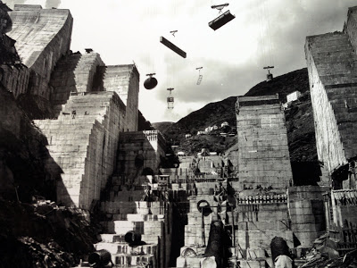 En cuantu la llabor artística, Vaquero Palacios creó sobre’l muru la central 12 baxorrelieves que rellaten el procesu producción de la enerxía elléctrica. En pallabres del autor, tratase de «una serie motivos pa imaxinar esquemáticamente lo que taba sucediendo detrás del telón». Los relieves, con una fuerte carga espresionista, simbólica y social, recuerdanos les obres de grandes muralistas mexicanos como Rivera o Siqueiros. Ya nel interior la central, la intervención de Vaquero Palacios ya visible n’abondo ellementos, como la escalera interior de diseñu modernu o la balconada volada sobre inmensas ménsulas de formigón dende la que dominase la sala turbinas. Nos muros d’esta sala alcuentranse les obres más conocíes, dos murales de 55 y 60 metros de lonxitú. El primeru, obra de Joaquín Vaquero Turcios, narra, con realismu’l complexu procesu de construcción de la presa, a través de la siguiente socesión d’acontecimientos que ficieron posibles la construcción del banzau: El segundu mural, realizado conxuntamente polos dos artistas, representa una descarga elléctrica. Joaquín Vaquero Turcios restauró estos murales nel 2001, añu en que tamién pintó nes ménsules que sostienen la balconada los retratos de Picasso, Max Planck, Freud y Einstein, qu’aunque formaben parte de la idea orixinal, nun taban bien vistos na década de los cincuenta, cuando realizose la obra. ———————————————————————————————— La construcción del embalse. El embalse de Salime, inaugurado en 1954, está situado en el Principado de Asturias. Es el tercer embalse construido en el río Navia, siendo en su día la mayor presa de España y la segunda de Europa. Se construyeron varios silos y tolvas para la fabricación del hormigón a pie de obra, cuyos restos aún pueden contemplarse presidiendo el entorno inmediato. Además se procedió a la búsqueda de una cantera de piedra para abastecer el enorme volumen. Los materiales que llegaban por vía marítima al puerto de Navia eran transportados a través de un teleférico de 36 km. de longitud, construido específicamente para este propósito, siendo el mayor de los construidos en ese momento. También fue necesaria la construcción de ataguías, almacenes, carreteras… y 4 poblados para cobijar a los más de 3500 obreros procedentes de otras partes de España, sumando así un total de más de 9000 obreros empleados durante los 5-6 años que se demoraron las obras. Alrededor de 300 fallecieron debido a las precarias condiciones de trabajo y escasez de alimentos. La presa y la central se construyeron entre 1948-53. Se levantó una presa de gravedad con taludes del 5% aguas arriba y del 72% aguas abajo, con un radio de 400m en su coronación y una altura sobre cimientos de 132m. En la parte superior tiene una longitud de 250m, en cuyo centro se encuentran los 4 aliviaderos con compuertas de 12x7m. Pese a la situación de miseria en la que estaba sumida España, sufriendo el embargo de las potencias vencedoras en la segunda guerra mundial, Inglaterra suministró en secreto las turbinas y generadores.