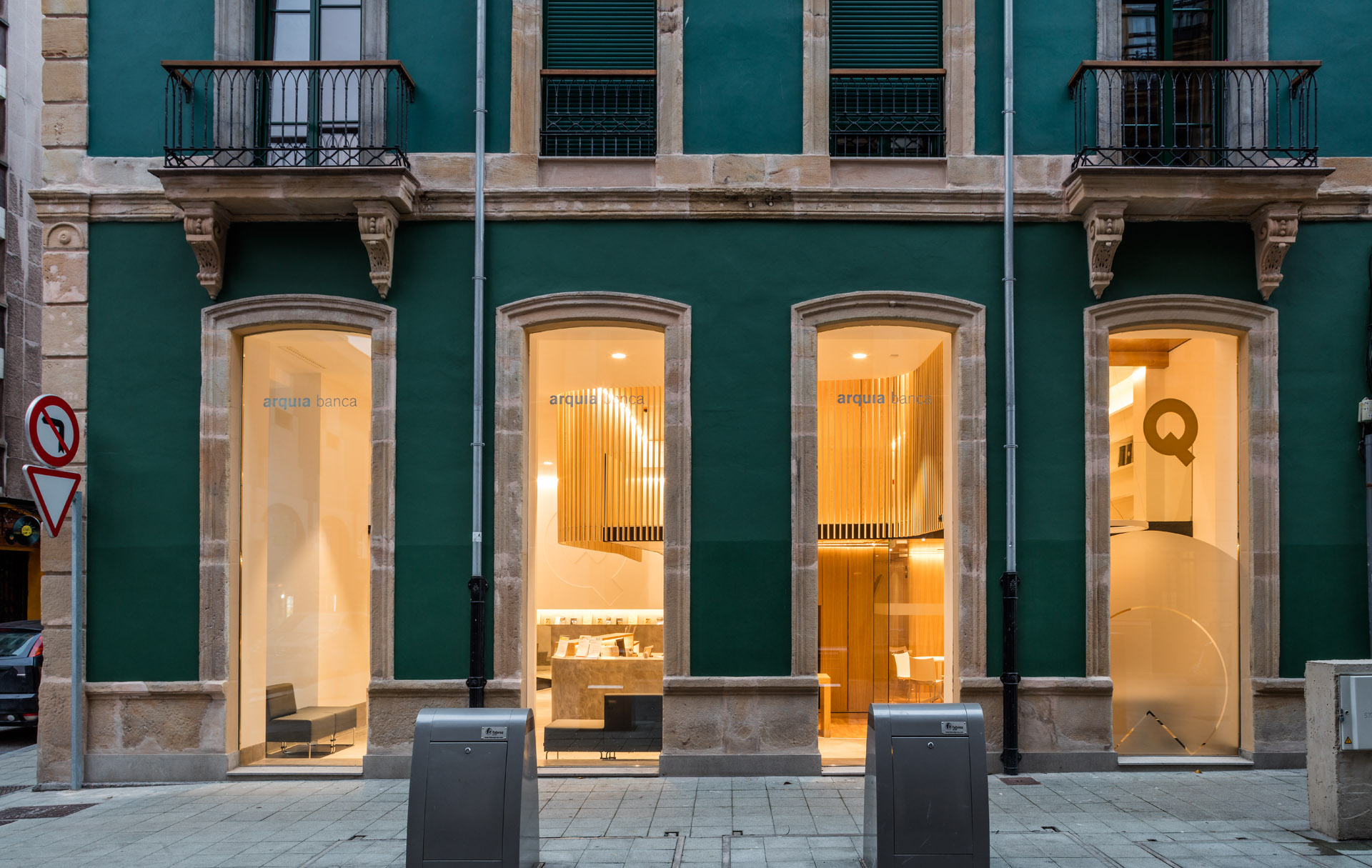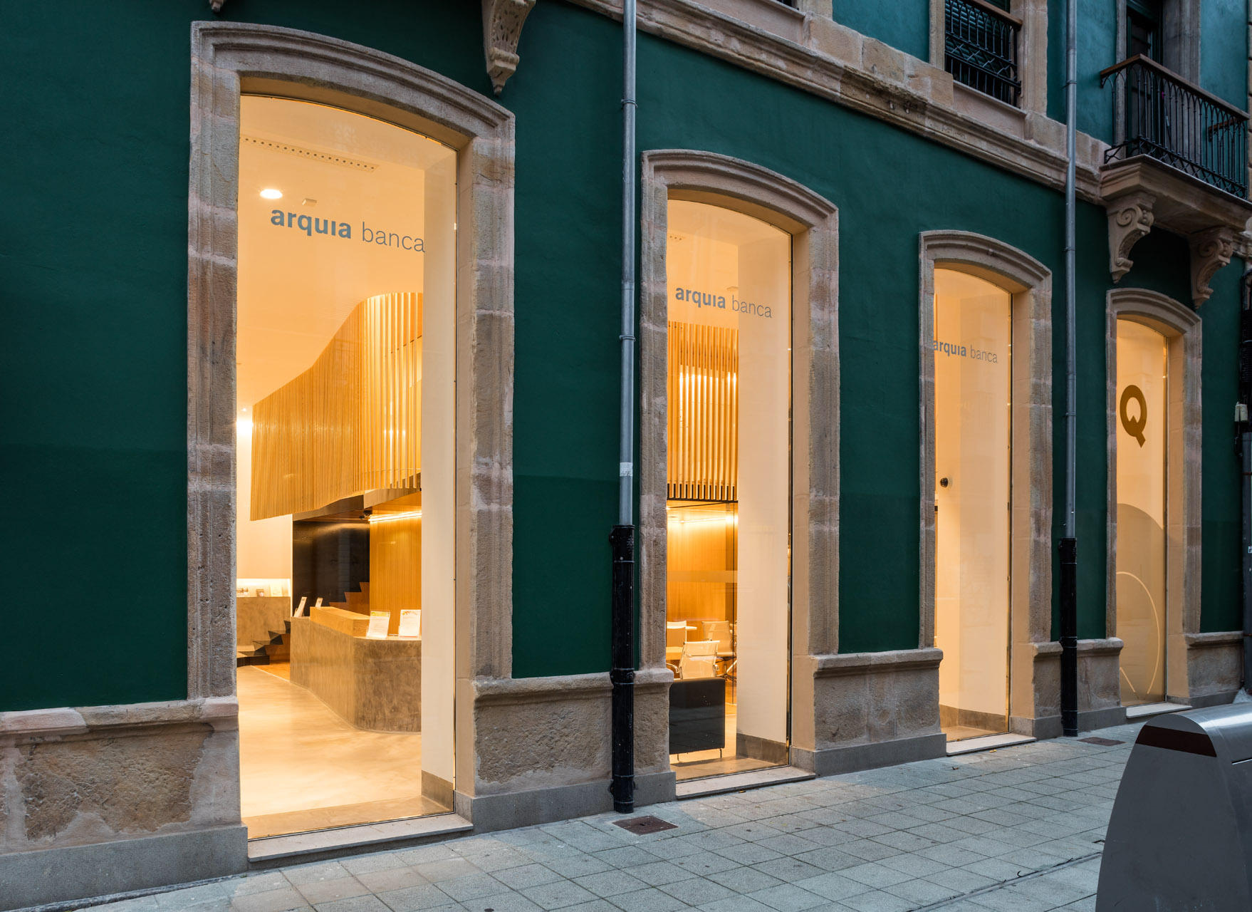| El diseño de esta oficina bancaria situada en el centro de Gijón es obra de los arquitectos Izaskun Bilbao del Olmo y Miguel Rubio Álvarez (Rubio Bilbao Arquitectos). El proyecto resultó ganador del concurso convocado por la entidad, al que se presentaron más de 70 propuestas para liderar el diseño de las nuevas oficinas de ARQUIA Banca.