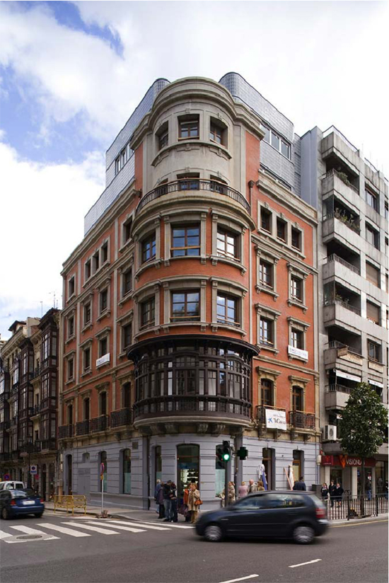 | El proyecto surge de la necesidad de ampliar un edifico protegido por patrimonio en la Calle Uría para destinarlo a el uso de oficinas.El edifico en cuestión fue proyectado hacia 1919 por Julio Galán en ladrillo y forjados de madera, constaba de planta baja, primera y sótano, a las que Casariego añadiría en los años 50 tres plantas más y un torreón que acentúa su condición de edificio en esquina. En dicha operación se tiene que reforzar el edificio con estructuras metálicas roblonadas y de hormigón.La construcción de los edificios vecinos, de mayor altura además de romper la continuidad de la cornisa generaron una medianera ciega de gran impacto sobre el paisaje urbano.Con estos precedentes, el objetivo del proyecto se convierte en conseguir una unidad volumétrica y hacer una diferenciación material entre los dos tiempos.