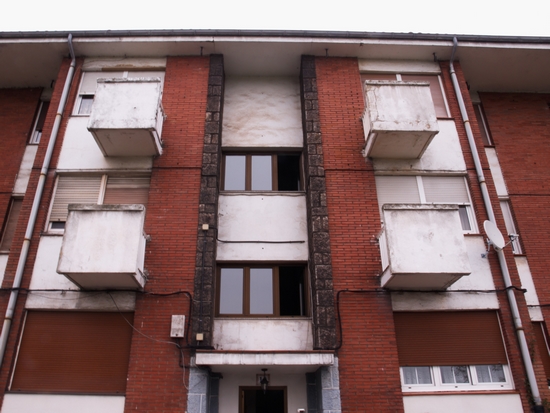 | Poblado obrero que construyó ENDASA (hoy ALCOA), junto a la fábrica para sus obreros. Debido al desnivel del terreno, los bloques van en línea, y son sencillos bloques de ladrillo visto, que juegan con el zócalo de piedra, y el paño vertical de huecos, que cambia de material.