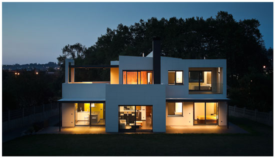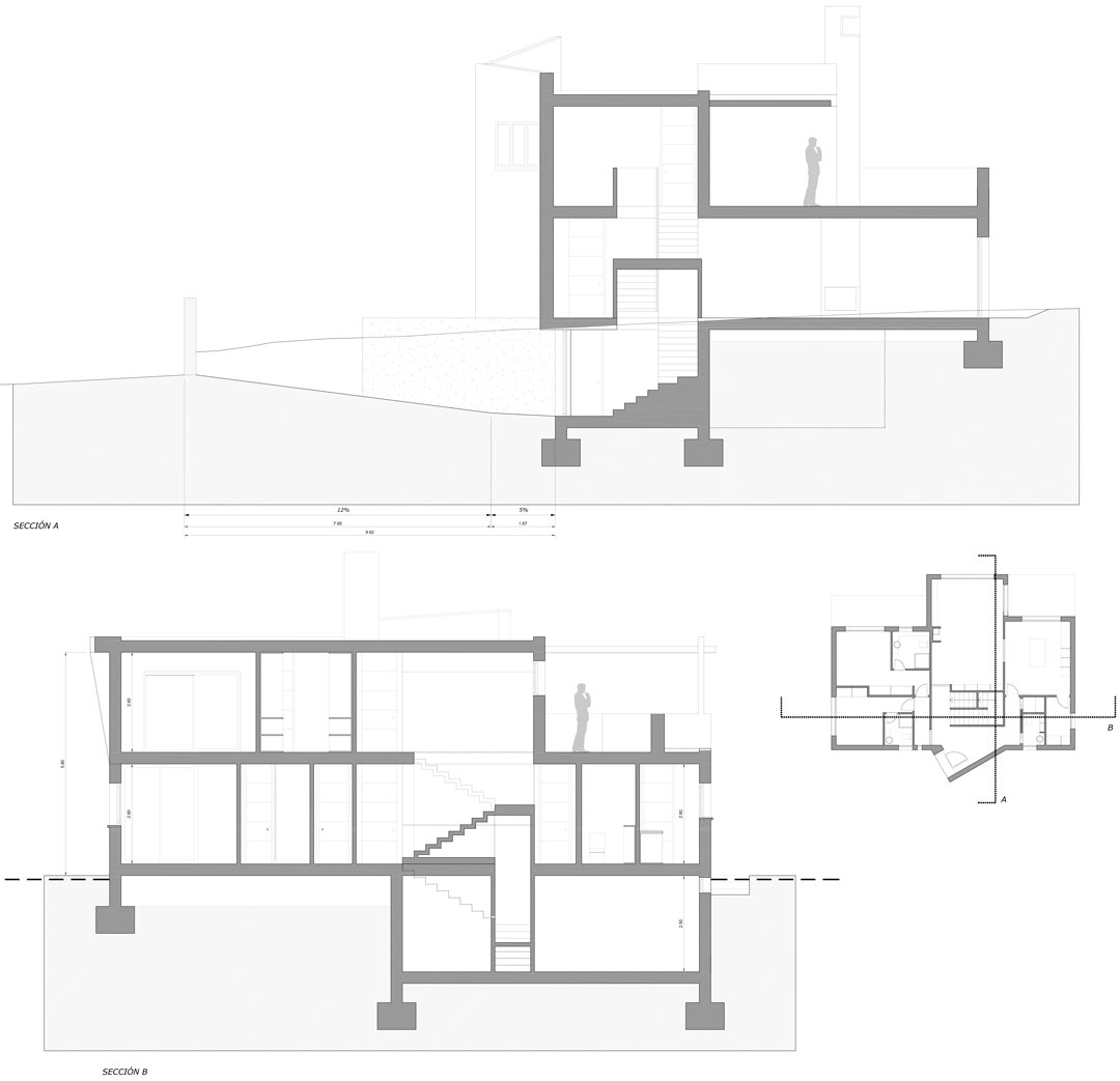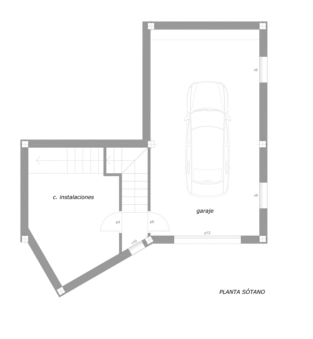 En el sótano se aloja la zona de garaje y sala de calderas d ebajo del ala oeste de la vivienda.