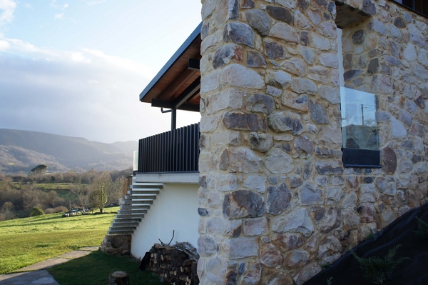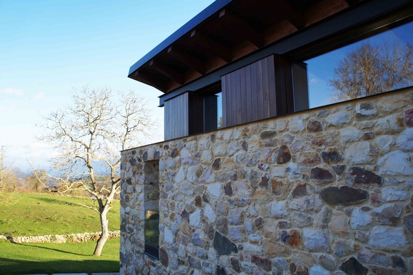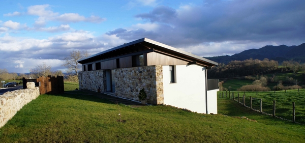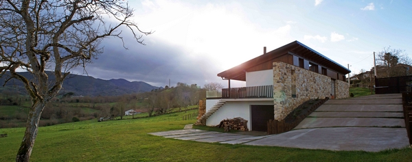 El arquitecto es aquí el moderador, el garante de un acuerdo entre las partes que logre una armonía que dé paso al surgimiento de la arquitectura. Ésta sólo emergerá después de la lucha entre los elementos antes mencionados, en la que muchas veces quedan demasiadas víctimas por el camino, que acaban lastrando el resultado final…. Ante todo, y como primer paso, debemos ganarnos la confianza del cliente, y a partir de ahí, conocerlo, entenderlo, y guiarlo hasta lograr construir aquello que realmente necesita: Una casa es donde se vive, el caparazón bajo el que habita una familia. Los arquitectos lo usan para describir un edificio y eso ha distorsionado lo que es una vivienda. Lo que hay que hacer es tomar ese lugar al que da sentido una familia y tratar de ver con ellos cómo mejorarlo. De ahí arrancamos. Partimos del hecho humano, del grupo. Con esta premisa como base, analizaremos después el lugar, el universo particular donde se va a asentar su casa. En este caso, se nos impone un espacio natural desbordante, en pendiente, con un entorno rural (armónico y proporcionado) detrás, al Norte, por donde también discurre el camino -la conexión de la casa con el mundo- y un marco paisajístico excepcional (Picos de Europa) delante, al Sur. Tímidamente, sin ofender, la casa se asienta en la pendiente, adaptándose a ella, cerrándose al Norte y protegiéndose de las vistas ajenas y de las condiciones climáticas más duras, pero mostrando a su vez su respeto al jugar con las proporciones y los materiales del entorno: Piedra, madera y teja. Sin embargo, al Sur, la casa se abre sin miedo, recibiendo de lleno la luz del Sol y enmarcando las vistas de la cordillera. Este ejercicio de adaptación al lugar incluye a su vez un esfuerzo por el ahorro energético y la sostenibilidad mediante el diseño pasivo ( orientación, ventilación cruzada, gruesos muros, materiales naturales y reciclables…) y el activo (Suelo radiante, potentes aislamientos, bomba de calor de alta eficiencia….) |