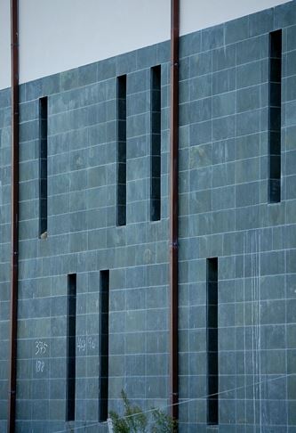 » Viviendas de Promoción Pública realizado en Boal. Cabe destacar en este proyecto la importancia de la fuerte pendiente del solar que condicionó el edificio de viviendas, exigiendo la realización de dos plantas de sótano, actuando estas como zócalo del edificio. De esta manera se marca mediante una diferenciación de materiales este zócalo de pizarra verde de las plantas propias de vivienda de estuvo blanco que ayuda a acentuar la geometría. A estar diferenciación dada por los materiales hemos de sumar una variación en la tipología de huecos que vuelve a marcar los dos usos del edificio: uno de ellos bajo rasante y otro sobre ella.Se tuvo especial cuidado en la implantación del edificio en el entorno, procurando no generar una volumen excesivamente grande desde la vista del valle. Para este propósito se hizo uso de la diferencia de materiales ya citada para procurar una lectura de conjunto en la que se diferencian dos volúmenes, uno apilado sobre el otro.En la implantación del edificio nos preocupó que el volumen de la edificación visto desde el valle no resultara excesivamente grande, de ahí la diferencia de materiales para que se pudiera leer el conjunto como dos volúmenes, uno apilado sobre el otro. |